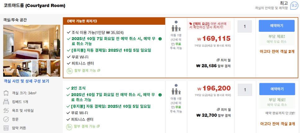 ✔️ 가격: 1박 15만 원대, 합리적인 5성급
