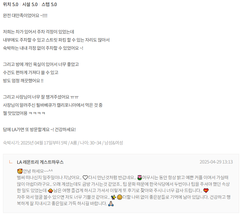 LA 한인민박 레몬트리 게스트하우스 친절 안내