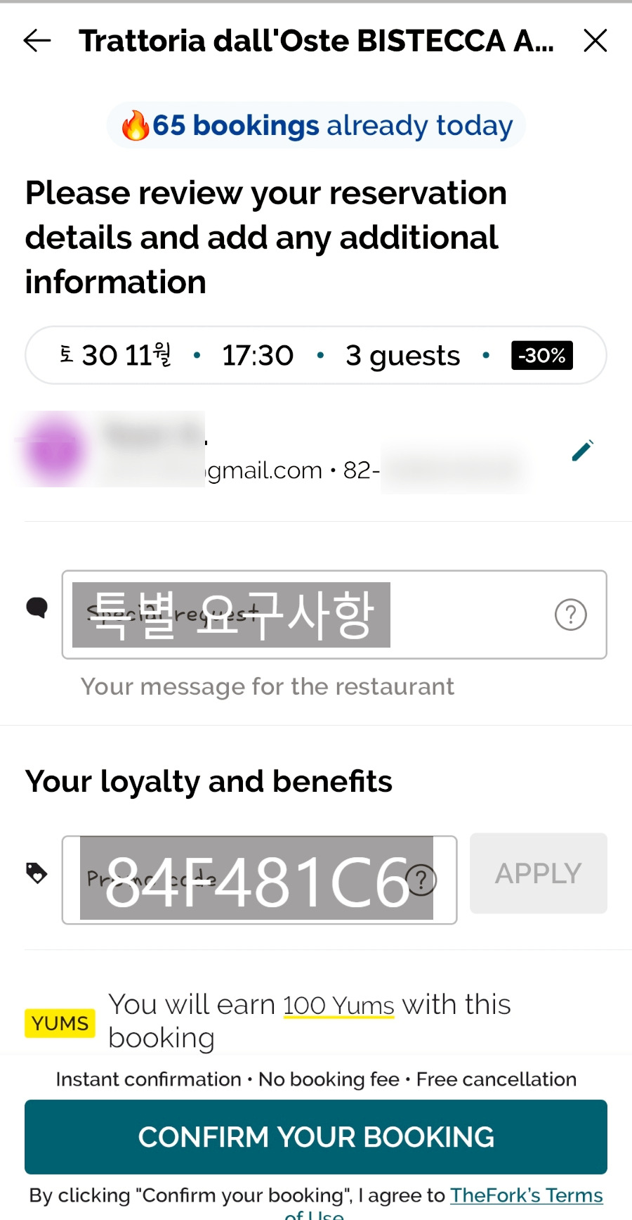 ✔️✔️TheFork페이 결제 시, 200yums 적립