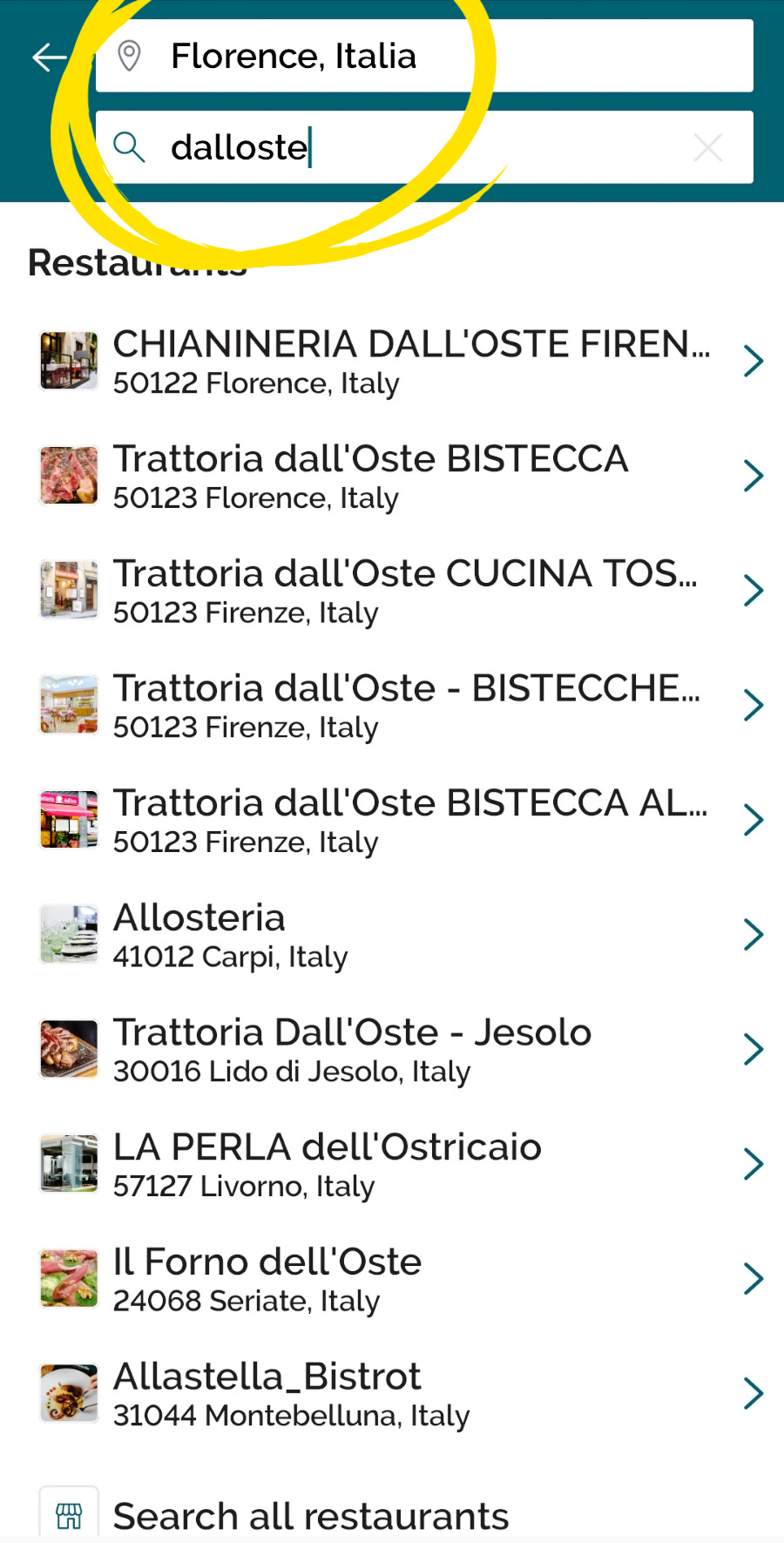 레스토랑 이름을 Dalloste 로 입력하면 지점이 나와요!