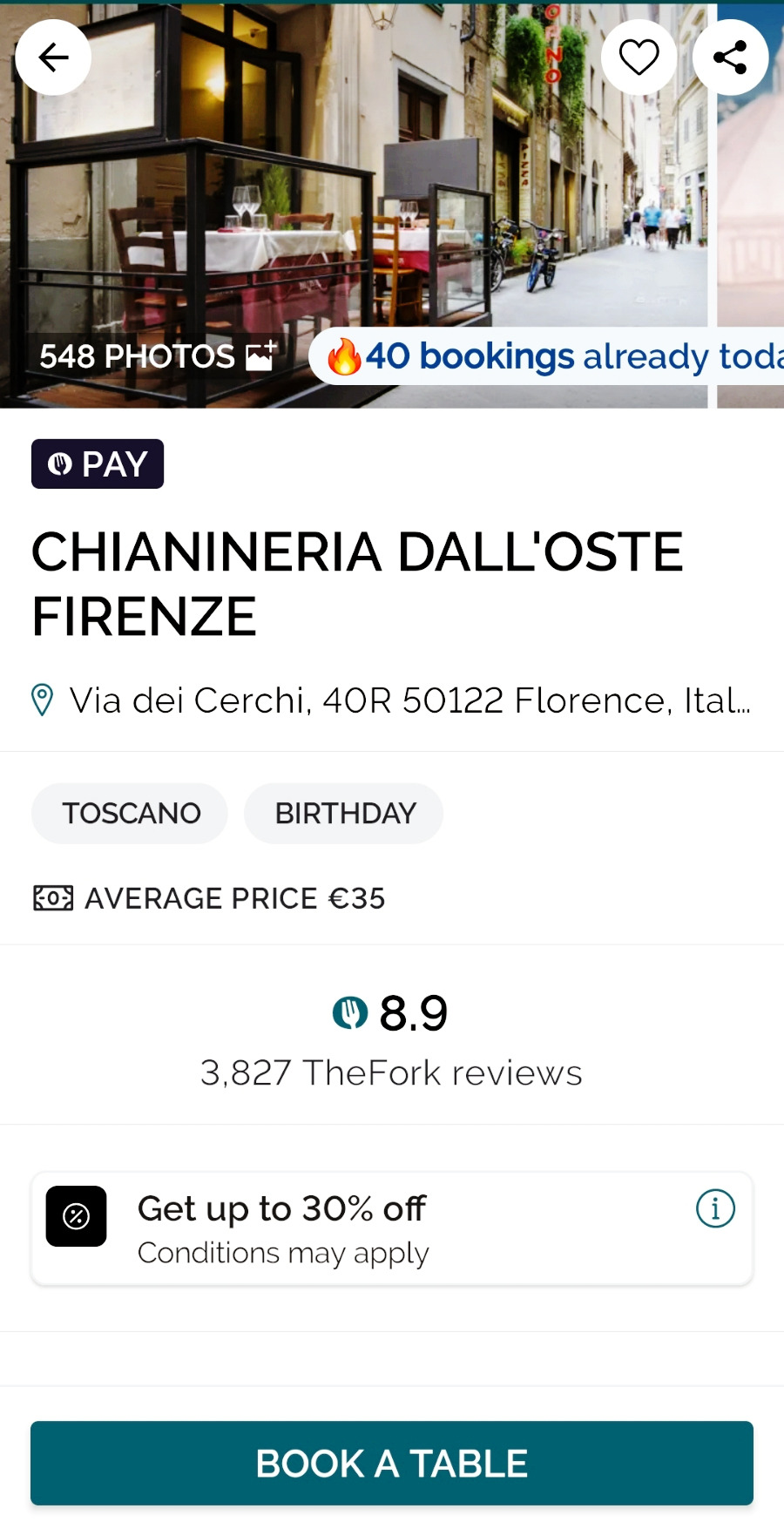 게다가 유럽여행 할인앱 더포크(TheFork)를 통해 30% 할인까지 받을 수 있어 가성비도 챙길 수 있습니다. (얼마전 이탈리아 다녀온 친구가 증명 😲)